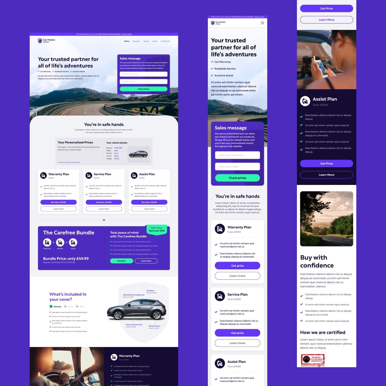 The Car Protect Direct website was designed with simplicity and usability at its core. With three main pages and nine variations dynamically retrieved via API, we ensured a smart, streamlined user journey. To enhance convenience, we implemented a vehicle lookup feature using the car’s registration number, allowing users to save time and reduce manual data entry. Additionally, we included address lookup functionality, enabling customers to enter either a postcode or the first line of their address to speed up the process further.