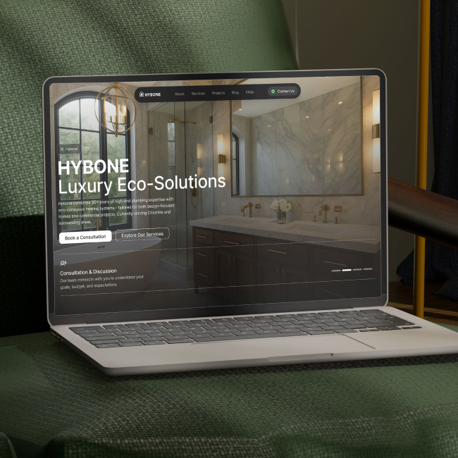 We started by shaping Hybone’s brand identity in Figma, creating a clean, modern design that reflects their blend of craftsmanship and eco-conscious innovation. The visual language, from typography to colour palette, was carefully chosen to balance technical expertise with a high-end feel, helping build trust with architects, developers, and private clients. We structured the content to guide visitors through Hybone’s story with clarity, highlighting their decades of experience and commitment to low-carbon solutions. Wireframes and page flows were mapped out to make navigation intuitive and the narrative around quality, sustainability, and innovation clear from the first click.