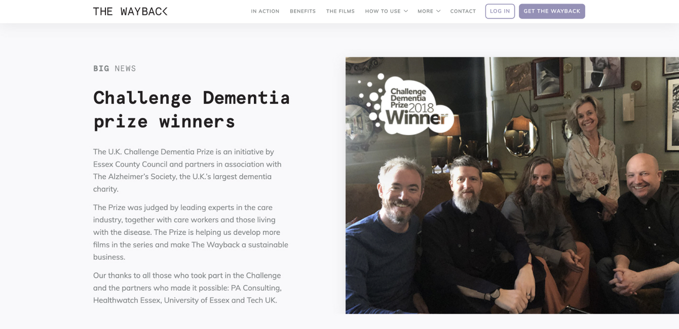 The Wayback is a virtual reality (VR) film series created for people living with dementia and their carers. It recreates cherished moments from the past, helping to spark memories and conversations that bring comfort and joy to those who struggle to remember. By providing a sense of familiarity and connection, the series offers a powerful way to improve the emotional well-being of individuals and their loved ones. Founded by Kevin Thomas, Dan Cole, Andy Garnett, Phillipa Thomas, and Trent Simpson—each with an impressive background in filmmaking—The Wayback has gained widespread recognition, winning prestigious awards like the Challenge Dementia Prize and Invest in Great. With such a promising start, the team needed a partner who could help transform their award-winning concept into a market-ready product that could reach more people and make a tangible difference in their lives.