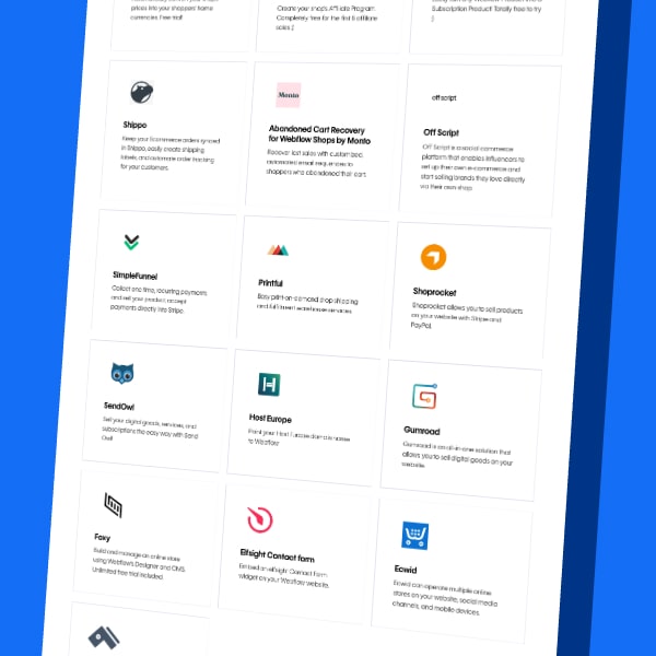 We always take advantage of using the well-known platform Webflow to create eye popping stores. This platform gives us the flexibility of creating beautifully styled websites with great functionality to drive sales.